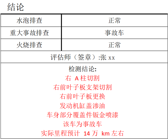 (1)车辆为存在重大事故、火烧、水泡问题,但检测报告中未准确反映的。